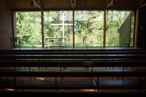 Omvendt kunne man også i lyset af det her behandlede emne snarere anse det for en moderne variant af bestræbelserne på at helliggøre rummet ved at inddrage … nu ikke en helgens knogler, men naturen. I og med at disse altervægge af glas næsten uden undtagelse giver udsigt til et stykke natur (om end oftest temmelig tæmmet), har man i den internationale litteratur mistænkt navnlig finnerne for en vis form for naturdyrkelse. I hvert fald må man medgive, at hvis det er en overdrivelse at anse det for en slags panteisme, synes denne arkitektur at forudsætte en kraftig betoning af skaberværket og dermed af første trosartikel – og selvom både Siren og Lehrecke (og Jensen i Husumvold) forsøger at sikre den anden trosartikels plads ved at plante et kors mellem kirken og naturen, springer det navnlig i Otaniemis tilfælde i øjnene, hvordan alter og døbefont er blevet udført i en næsten forsvindende fnuglet form ... de må åbenbart ikke forstyrre udsigten.